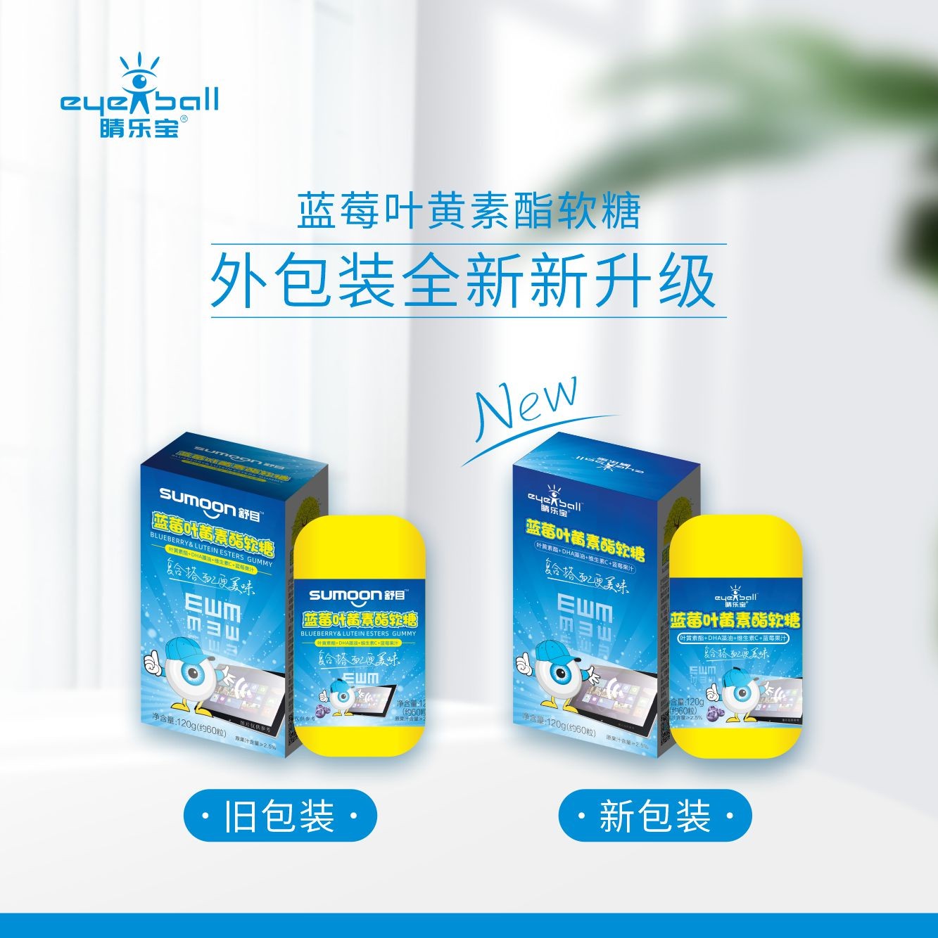 感谢您对“舒目sumoon”品牌产品一如既往的支持与厚爱!为进一步优化产品包装,提升品牌形象,根据市场需求、客户反馈及公司发展需要,我司决定自2022年08月起,对叶黄素软糖系列产品进行品牌包装升级。