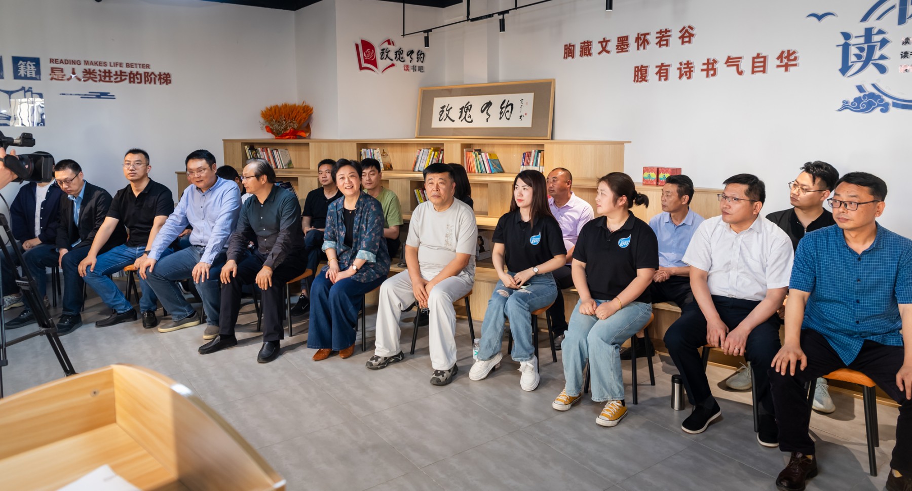 交汇点讯 风好正是读书时。5月16日下午,由泰州市高港区工商联主办的“玫瑰有约·同心悦读”活动在泰州医药高新区(高港区)常玫瑰的馄饨店玫瑰有约读书吧举行。